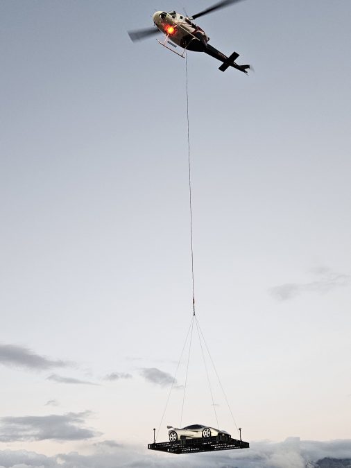 • Unique Auction Event Featuring a Helicopter Entrance: The S1 LM made a spectacular entrance at the amfAR charity Gala Dinner during the Las Vegas Formula One Grand Prix, with a helicopter lowering the car into the venue, creating a memorable spectacle.