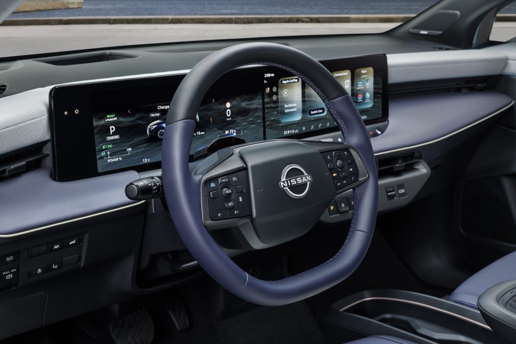 Inside, twin 14.3” screens form a digital cockpit, and the NissanConnect Services app offers remote access to battery status and climate control, keeping the LEAF connected both inside and out.