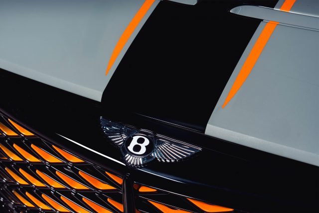 At its core is a potent 740 bhp W12 engine, complemented by a sleek black gloss racing stripe with Mandarin pinstripes. The glossy Beluga matrix grille and sophisticated five-spoke alloy wheels enhance its striking design.