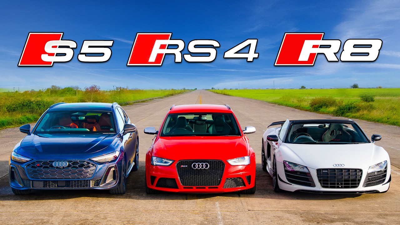 Carwow has brought together three generations of RS4 (B5, B7, and B8), a first-generation R8, and an R8 GT to see which one comes out on top. They’re running a knockout drag race tournament to find the ultimate Audi.